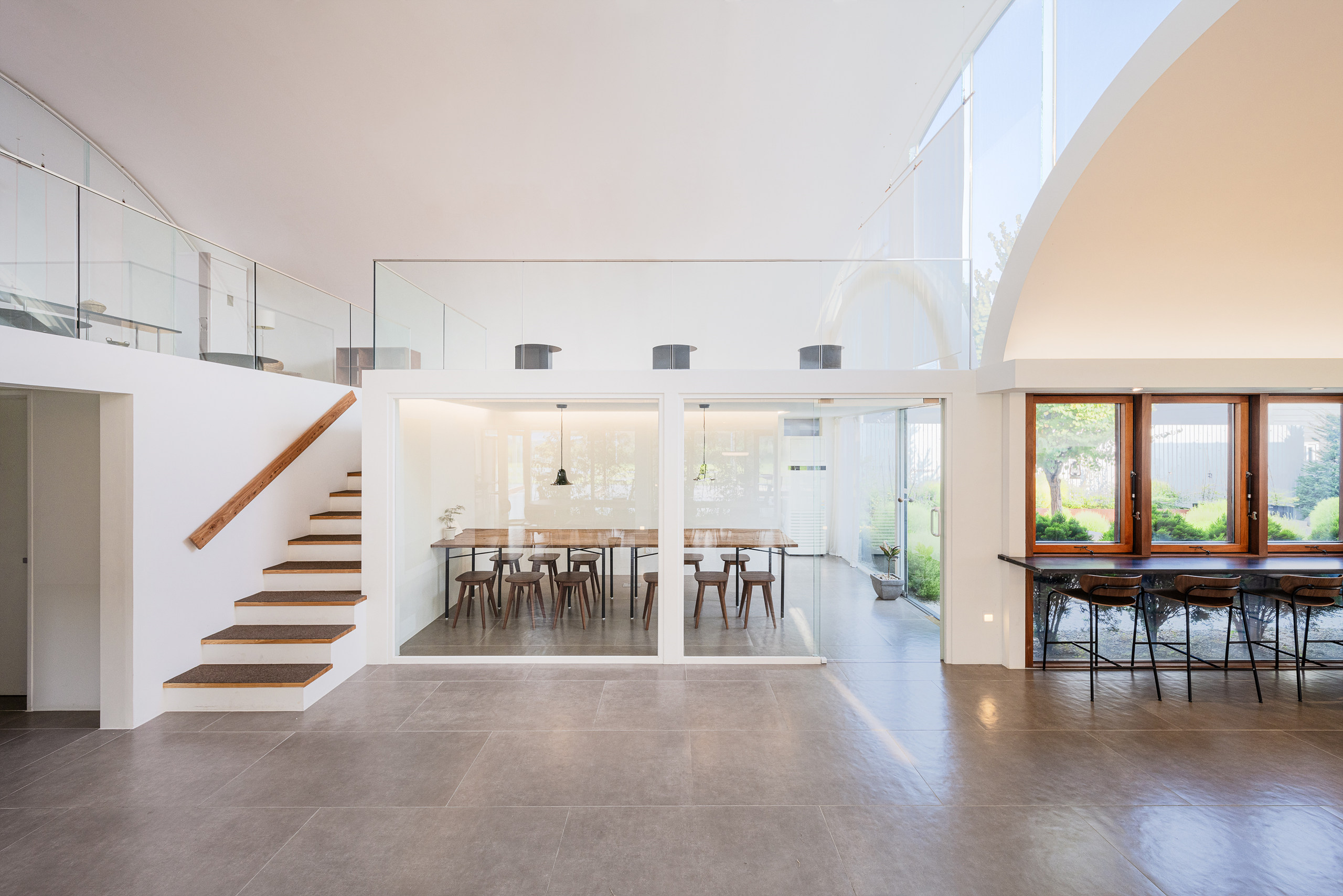 세 개의 기본 모듈인 둥근 아치 단면을 조합하고, 디자인 오피스를 제외한 내부 공간은 오픈플랜으로 계획하여, 내부에서 아치들이 겹치며 만들어내는 다양한 볼륨과 변형된 아치를 경험할 수 있도록 계획하였다.